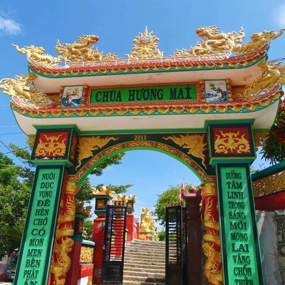 Men dọc con đường ven biển, qua những lối nhỏ Quý khách sẽ bắt gặp chợ Nhơn Hải nhộn nhịp. Sau đó đến tham quan Chùa Hương Mai là ngôi chùa có niên đại hàng trăm năm gắn liền với sự tích về bức tượng Quan Thế Âm mà trước đây là khối đá vôi nguyên thủy được người dân vớt lên đem gửi vào miếu thờ vì có hình dạng như một bức tượng. Sau khi được vào miếu thờ, trải qua nhiều lần tô đắp đã trở thành tượng phật Quan Âm thiêng liêng ngày nay.