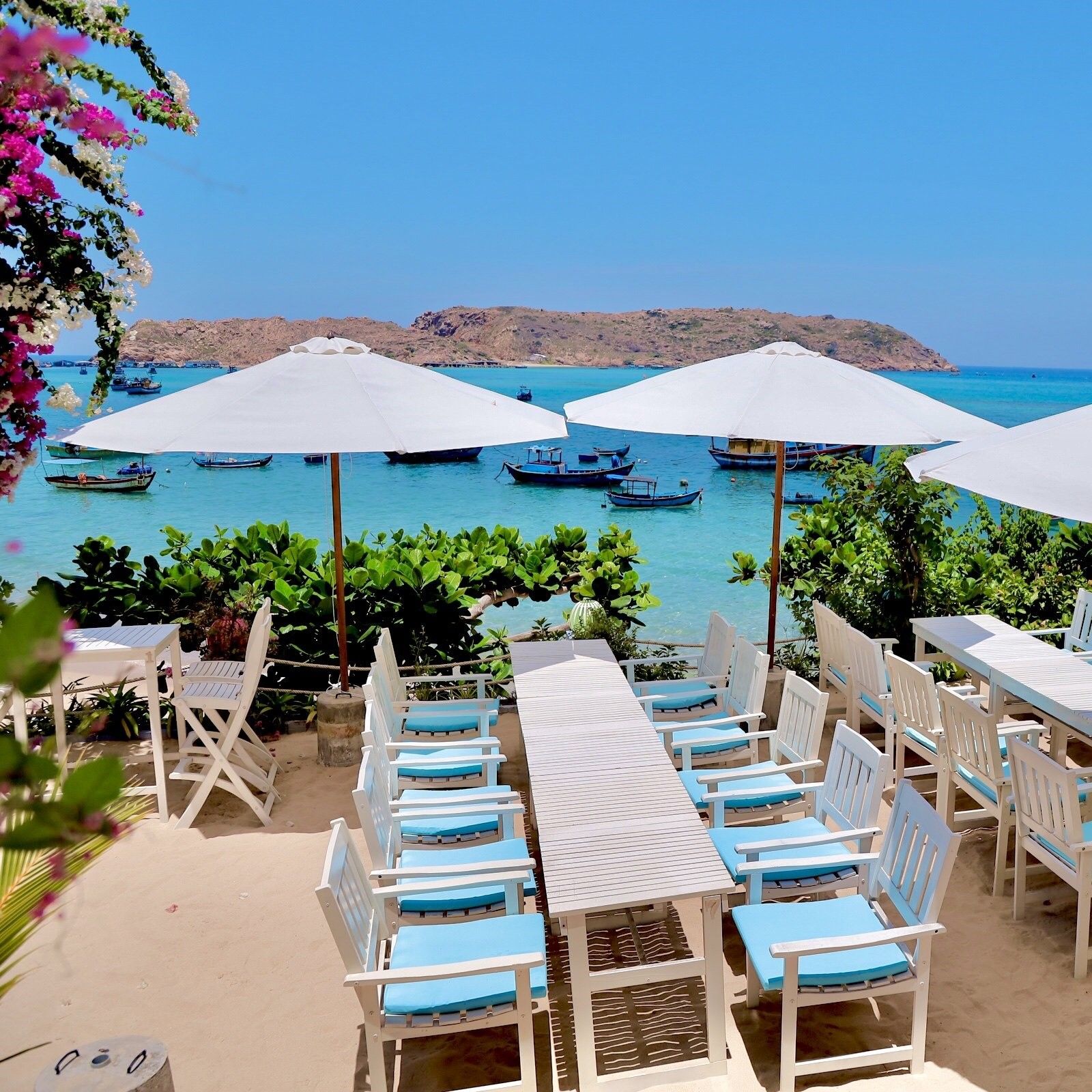 08h00: Quý khách có mặt tại CocoCamp – nhà hàng có view biển đẹp nhất khu vực, nằm cuối làng chài Nhơn Hải, từ CocoCamp Quý khách có thể nhìn thấy được bao quát làng chài và góc trời biển đảo Hòn Khô bao la.