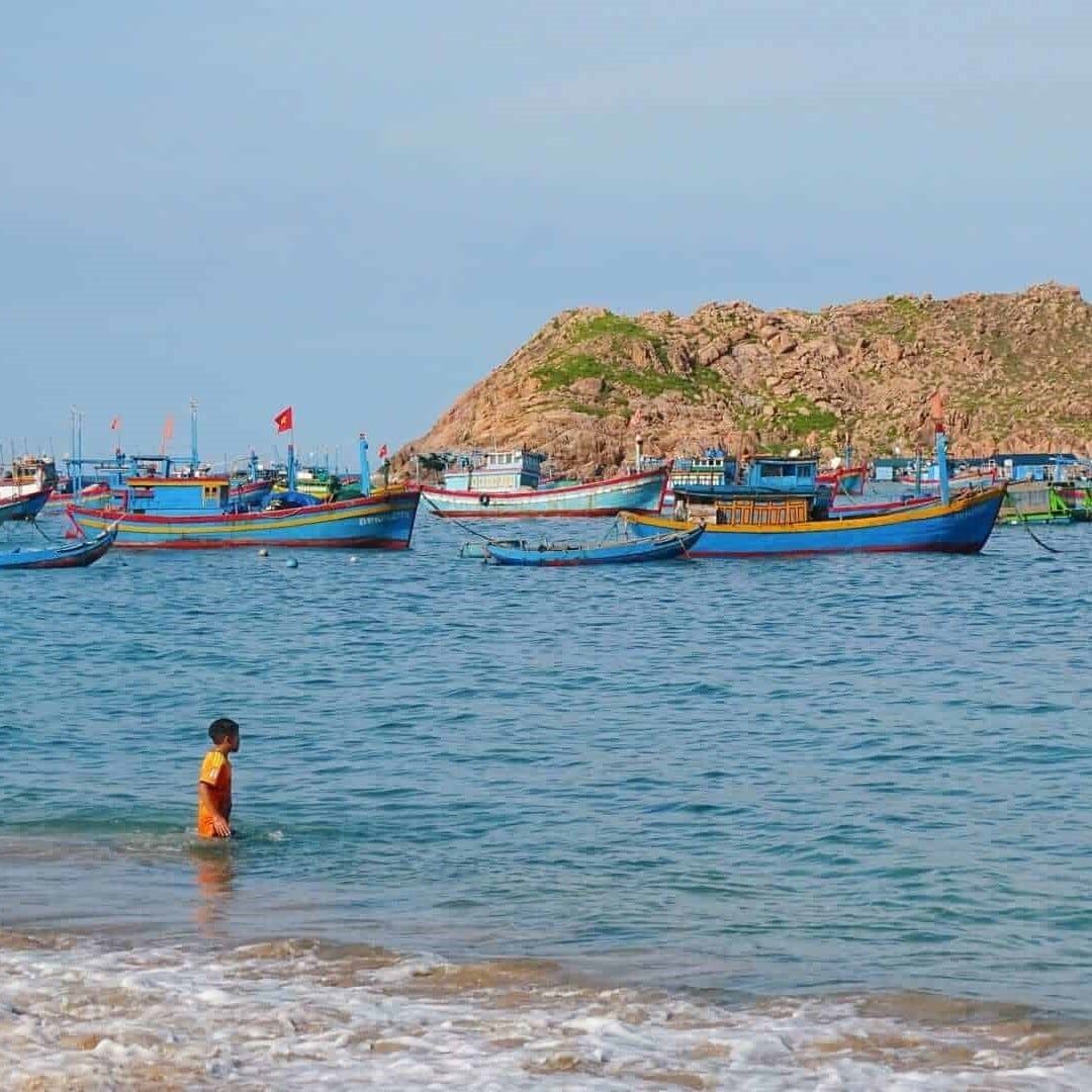 08h30: Xe điện đưa quý khách tham quan một vòng quanh làng chài Nhơn Hải, ngắm nhìn những vẻ đẹp bình dị và cảm nhận hương vị của gió biển.