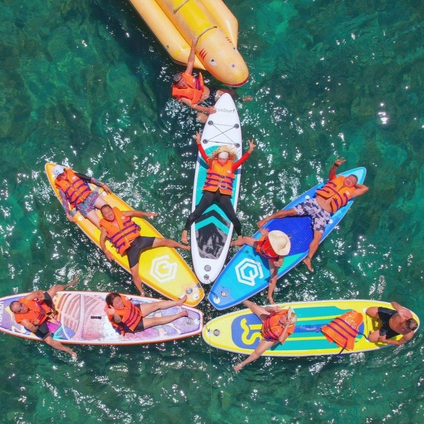 Tiếp theo, Qúy khách sẽ có trải nghiệm chèo SUP đón bình minh trên biển. Chèo SUP là một trong những lựa chọn trải nghiệm tuyệt vời để tận hưởng bình minh rực rỡ trên biển, hít thở bầu không khí trong lành ban sớm, tăng cường sức khoẻ, thư giãn, xua tan căng thẳng và mệt mỏi trong cuộc sống lẫn công việc.